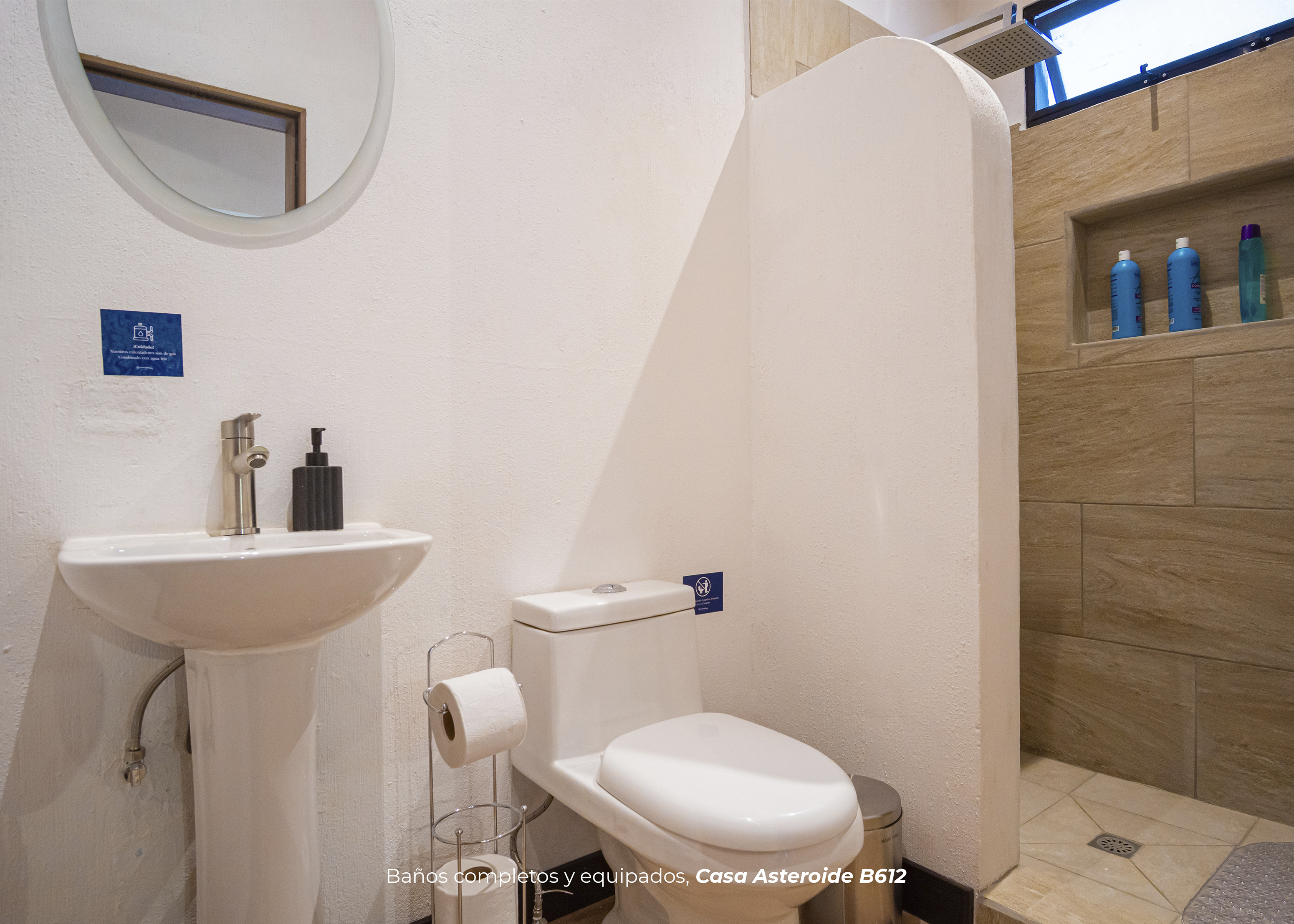 Cuenta con dos habitaciones. Una de ellas con cama king, sofá cama y baño privado. La otra habitación cuenta con 4 camas imperiales y baño. Sala con televisor, comedor, cocina equipada, área para barbacoa y firepit en medio de un hermoso jardín privado.